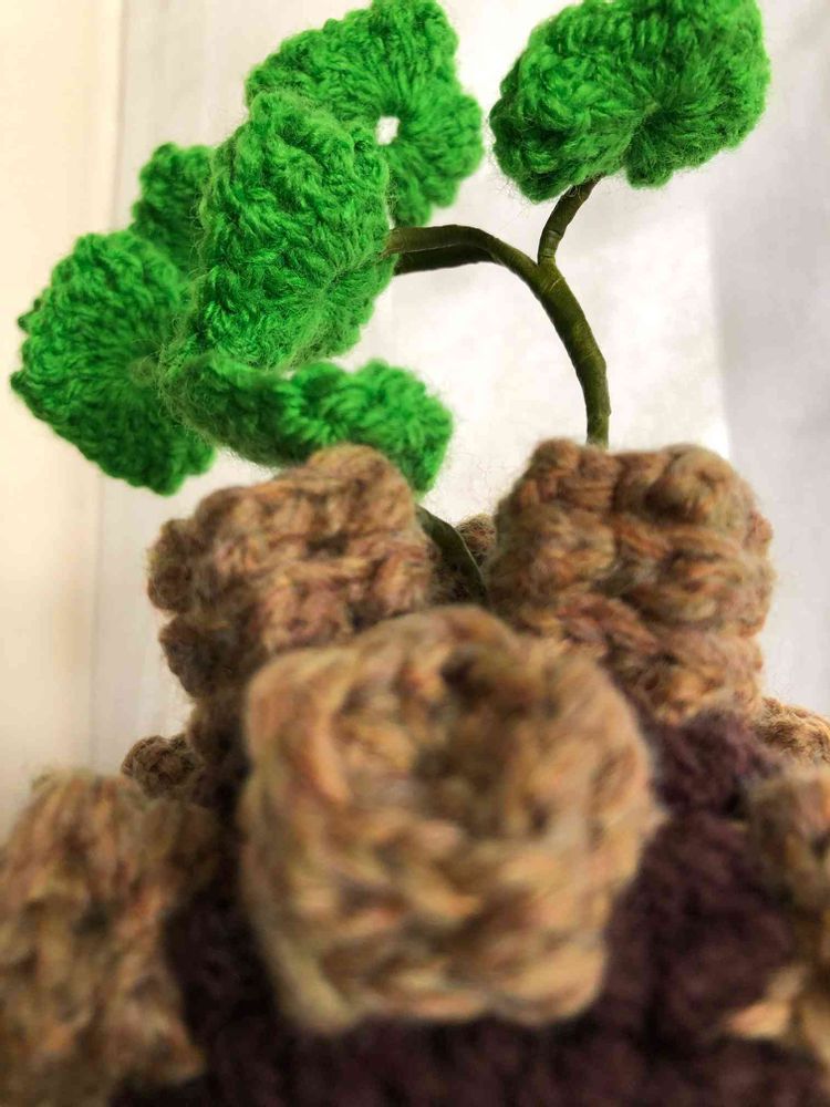 亀甲竜という植物が編みぐるみになりました。暖かな窓辺で育って貰います😄