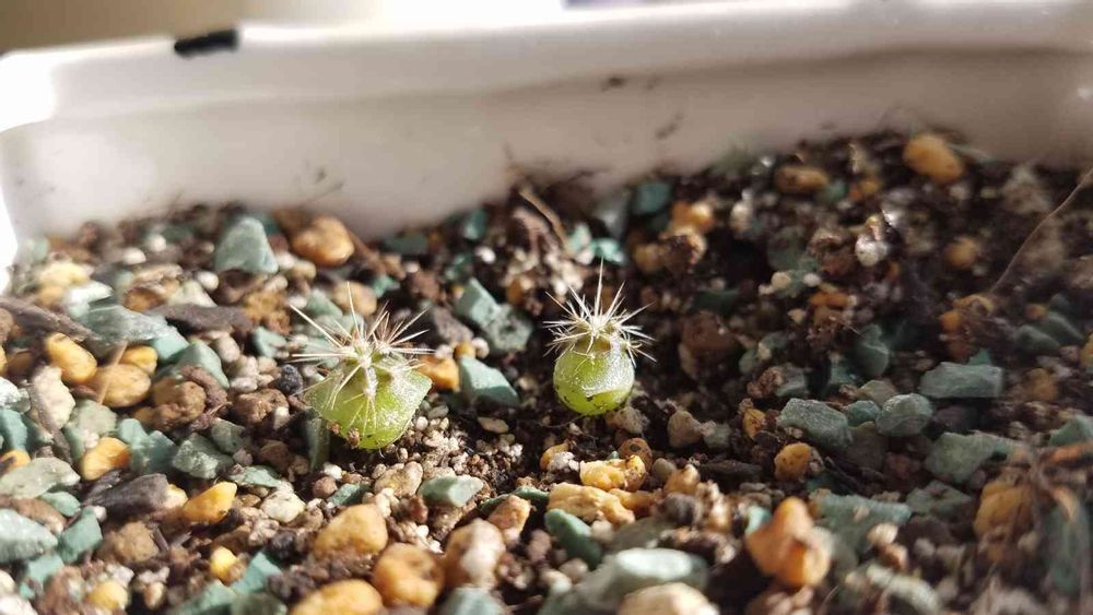 実生サボテン近影。発芽から二ヶ月ちょっと。