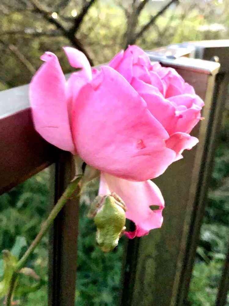 朝から乗っかっていたバラから、夕方ついに飛び降りた!