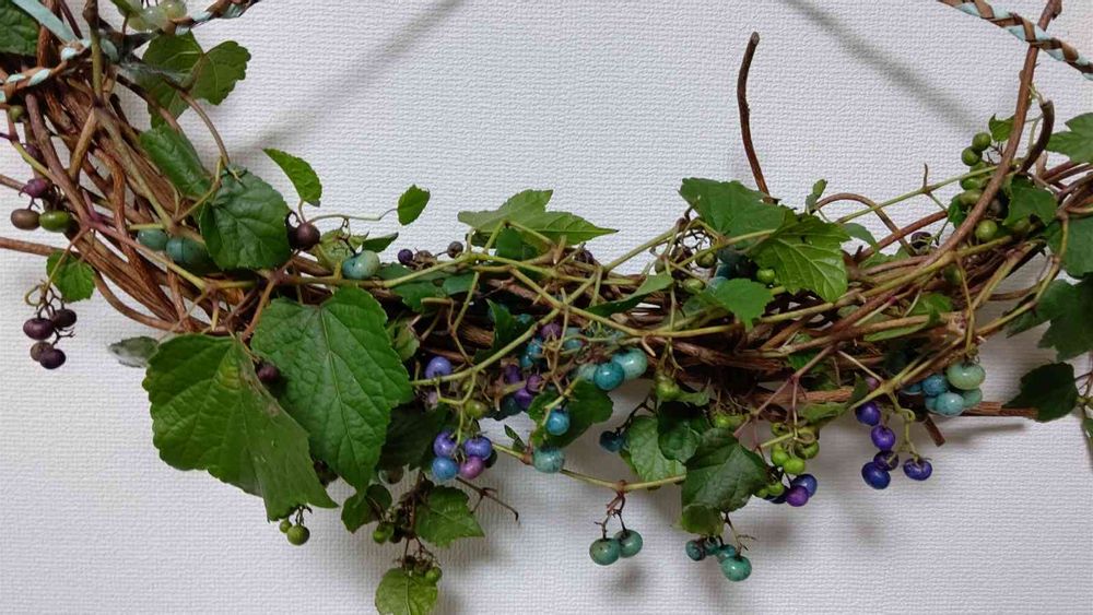 この野ブドウとても綺麗な色に変化していきますが、悲しいことに留まってくれず、最後は黒く枯れてしまいます