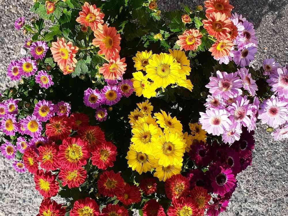 一鉢で五色の菊🌈