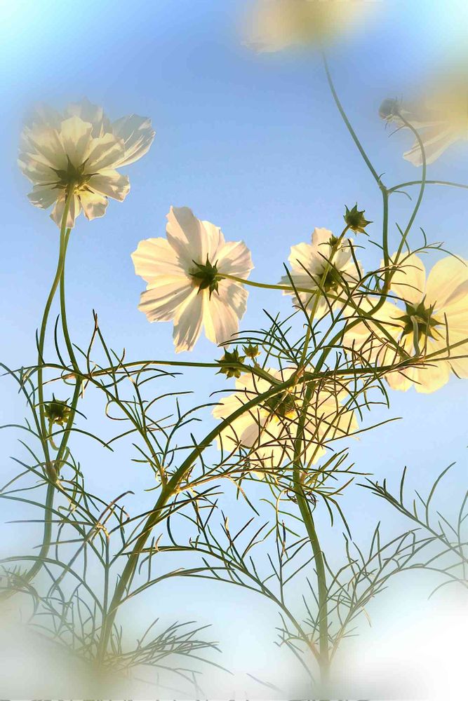 白いコスモス☆*:.。.と、お空とても素敵ですね😊♪