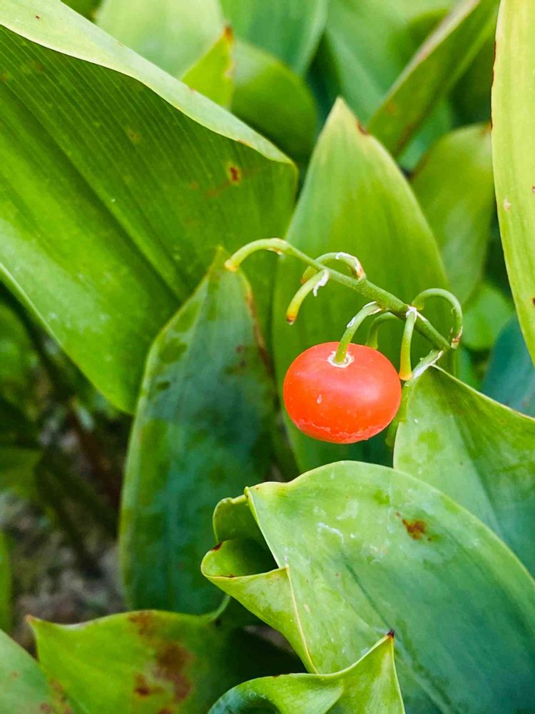 スズランの実初めてみました。家にもスズランありますが、この時期は枯れてます。