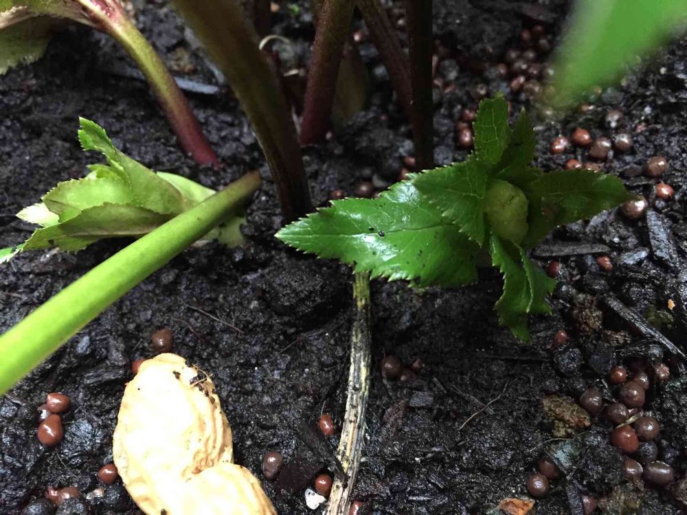 狭い花壇の雪がとけている場所があつたので、ワクワクしながらのぞいて🔎みると、