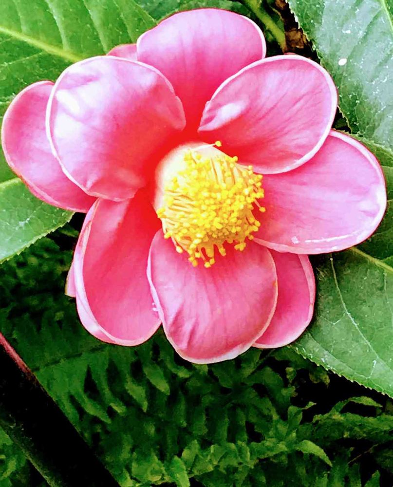ベトナム北部の亜熱帯の樹林下などの暗い場所に生えるツバキの仲間です。花は桃紅色で6弁以上で半八重に見えます。葉はキンカチャやチャに似ています。