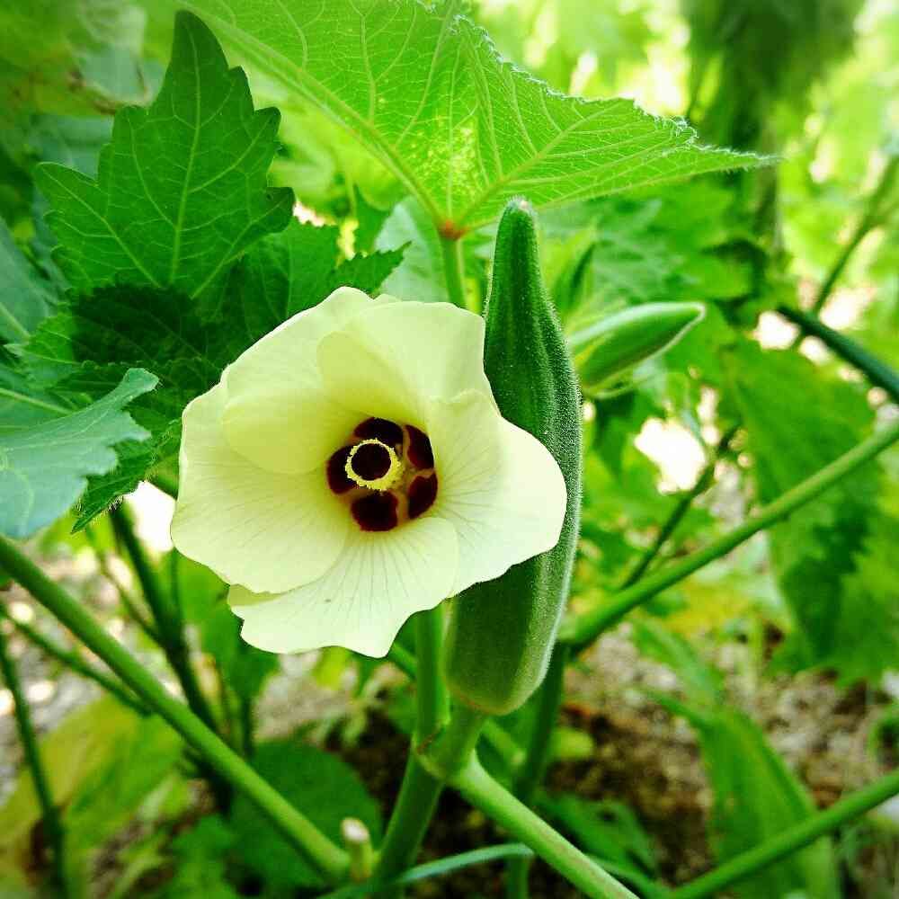 夜勤🌃明けのホッとしたひと時に見るオクラの花はさぞかし心癒されることでしょうね🎵