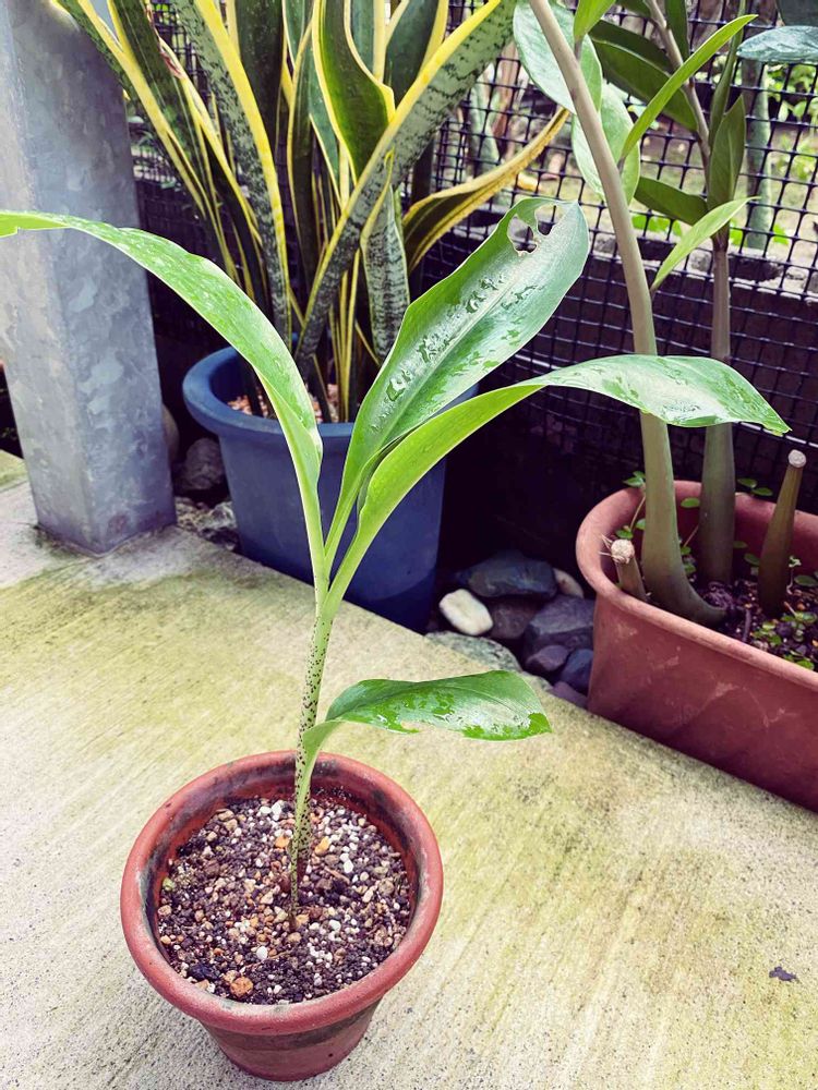 葉っぱがアマゾンリリーに似てる気がしますが…株元に褐色の斑点があります🧐