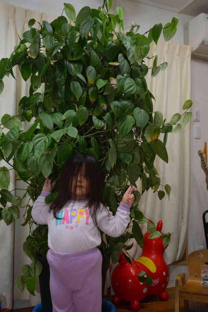 室内に入れてビックリ😲春先よりはるかにデカくなっとる😅風呂上がりの2歳児との比較❤️裏に回れば2歳児隠れちゃう😆