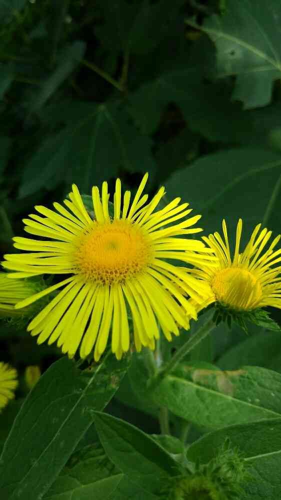 無花果の下でオシロイ花と競ってます😄😄名前?です😓