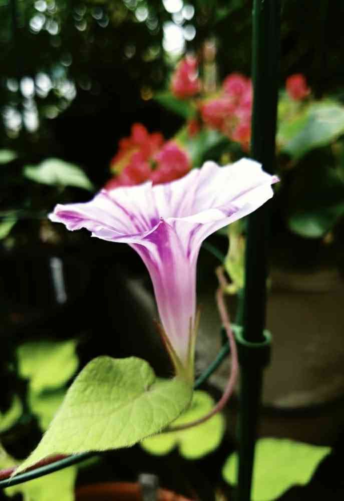 今朝の朝顔のギバちゃんを横から見たらこんな感じでした。