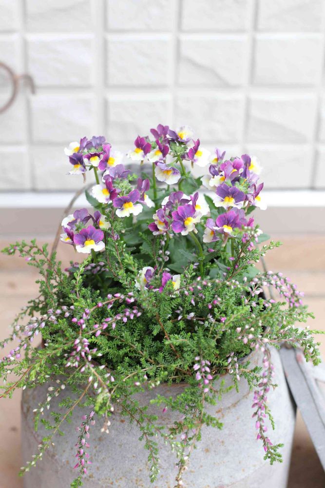 この鉢は、小さいので、いつもはネメシアだけが多いんですが、今回は、しだれるカルーナがあったので、ギュッと2つ入れてみました😊