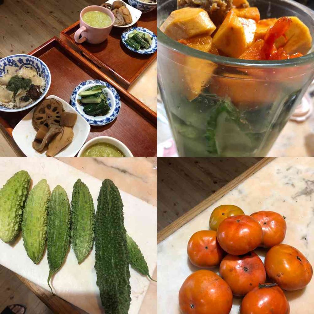 ニガウリは刻んで、いただいた時に冷凍してスムージーにニガウリ入れてますが、柿はもったいなくて、入れられません。実家は今年行けてないので…