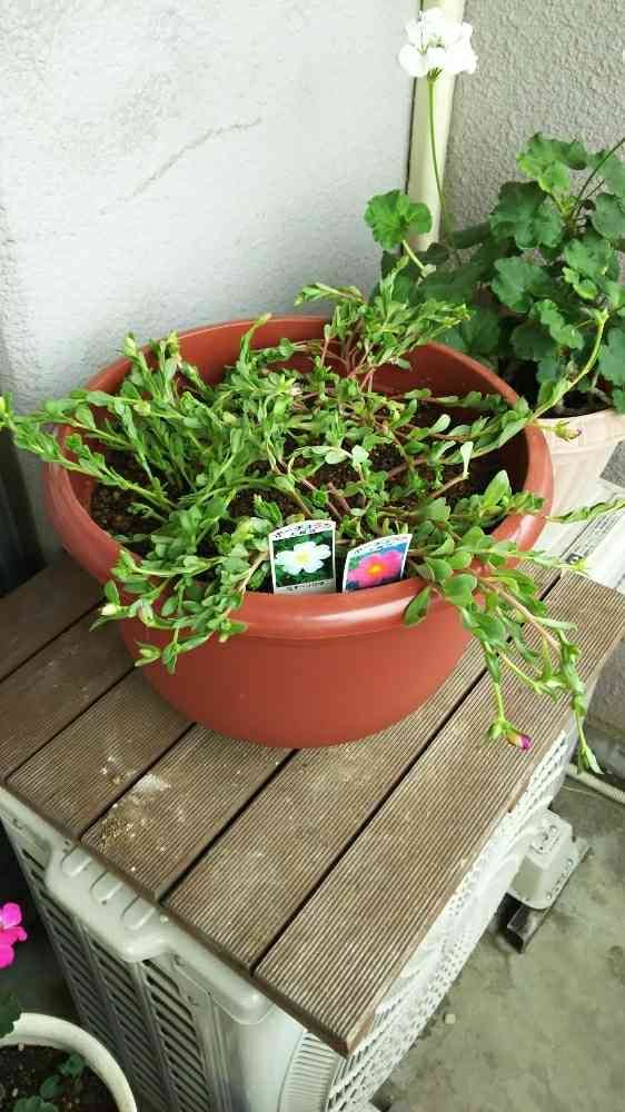 今日、いつものお気に入りの花屋さんで、ポーチュラカの寄せ上を見てて店長のオヤジさんにいろいろ質問してたら、それなら、もう花がついてないのが3株だけ売れ残りがあるからこれで挑戦してみなと、サービスしてくれたのでオヤジさんに聞いた様に切り戻して寄せ植えしました🤗