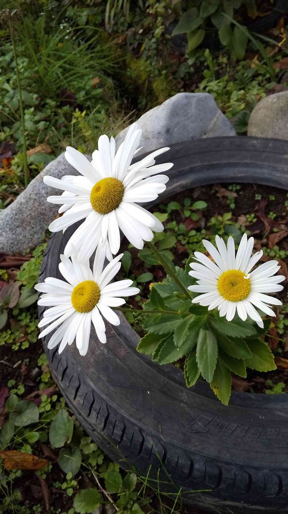 タイヤの植木鉢 はまぎくさんよろこんでますね❤️ノッコちゃん きくさん大好きみたいね〜🌸🌸🌸