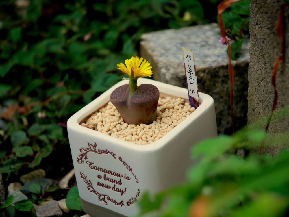 うちのリトープスは、まだ固く口を閉ざしたままなんです😑