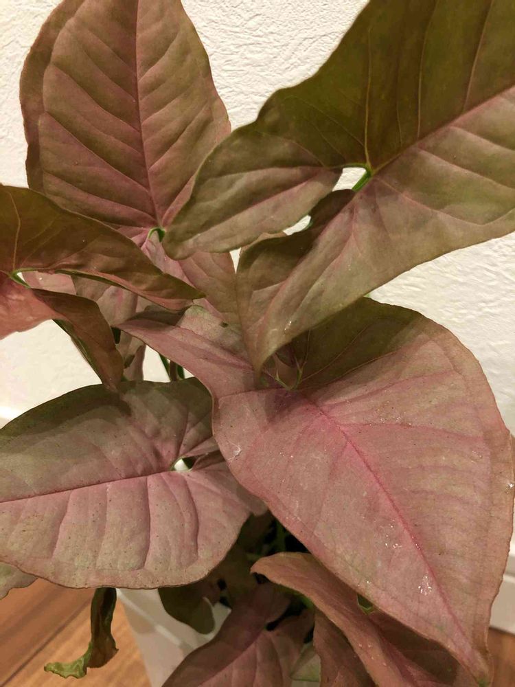 シンゴニウムの優しいピンクに惹かれて我が家にお迎えしました。