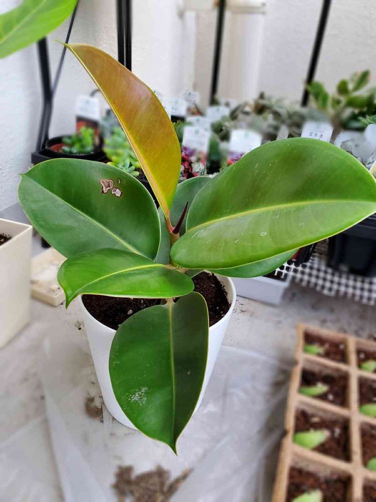 ゴムの木は天然ゴムの材料がとれる植物の総称(だったハズ)なので、たくさんの種類があるみたいです。葉の形、大きさ等いろいろ違っていて面白いな〜なんて個人的に思ってます😁