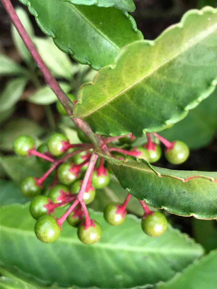 万両の実の付け根(萼)の鮮やかな赤に、感動しました。🥰🌿❣️
