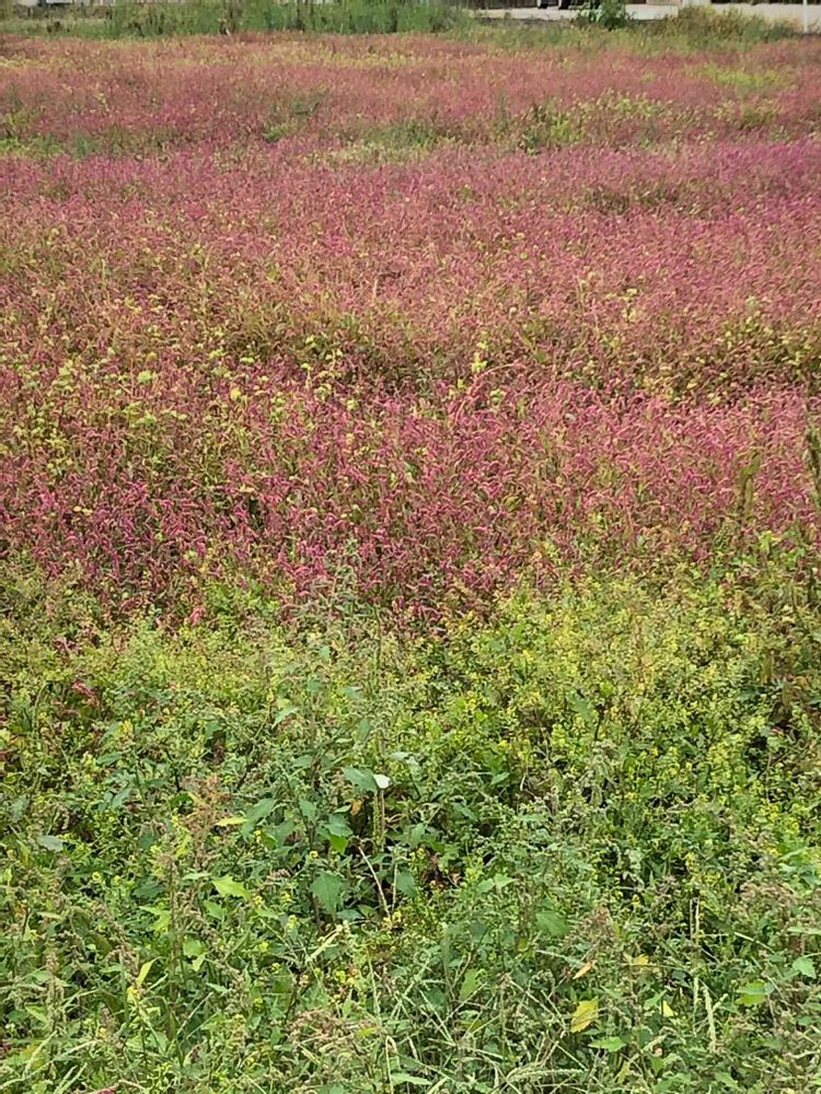 ただ使われていない畑なのかもしれないですが、細かい黄、緑、紫、遠くまで伸びるグラデーションがキレイで📸