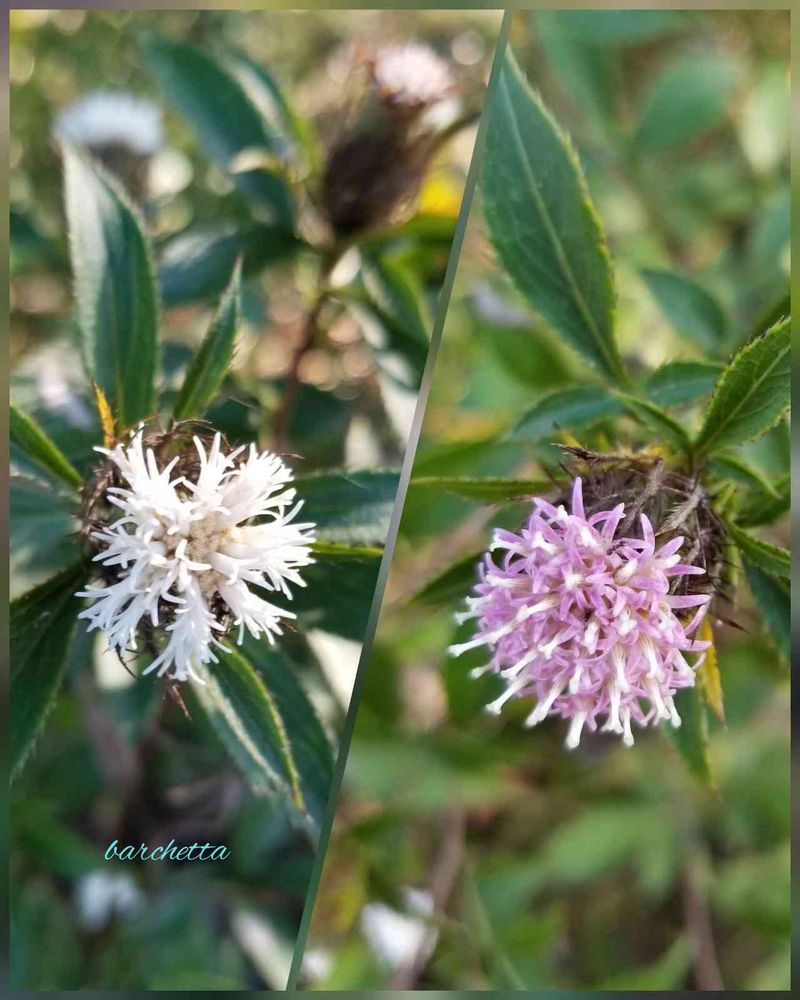 10/7UPのオケラですが別の場所で見つけたオケラ。雌株は両性花、雄株は雄花の雌雄異株があったので再び登場です。花色も白だけでなく淡紅色もあるのですね。
