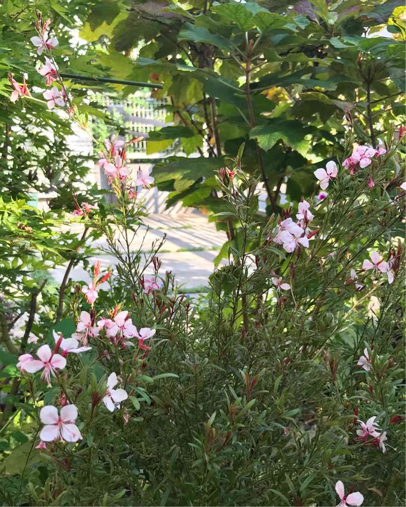 ガウラ5月頃だったかウォーキング中に見かけ、白蝶草ともいうと知り、大好きになりました❤️ホントに繊細な花ですよね。白しか知らなかったので、このピンク素敵です💕