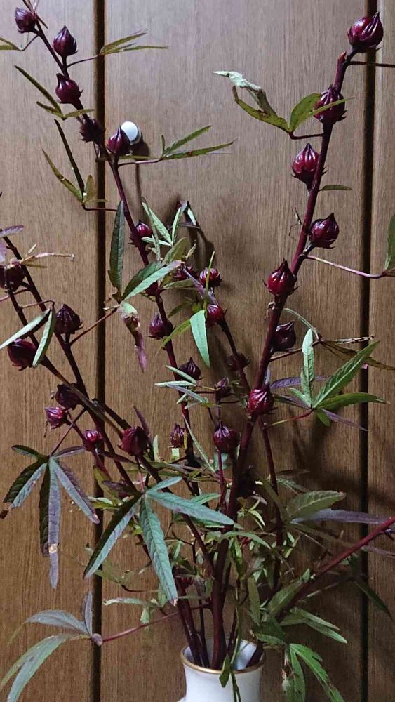 ローゼル、たくさんの実がついてますね😍今年は、植えなかったのですが、畑植えするせいか?背丈ばかり伸びて実は少なめ⤵の例年😣花盛りの頃には台風🌀⤵となかなかこれだけ実のついた枝を見る事はないので羨ましいです🥰
