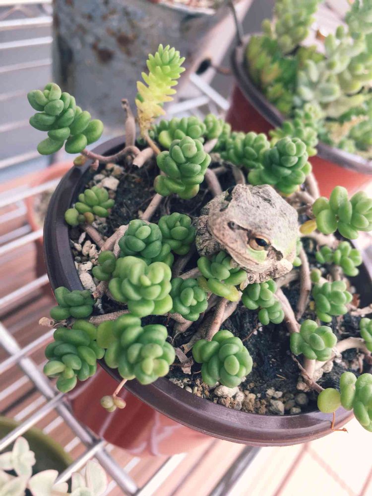 我が家は室内でアマガエル飼ってますが、ちいさんのお庭の様な自然体が理想です✨✨✨