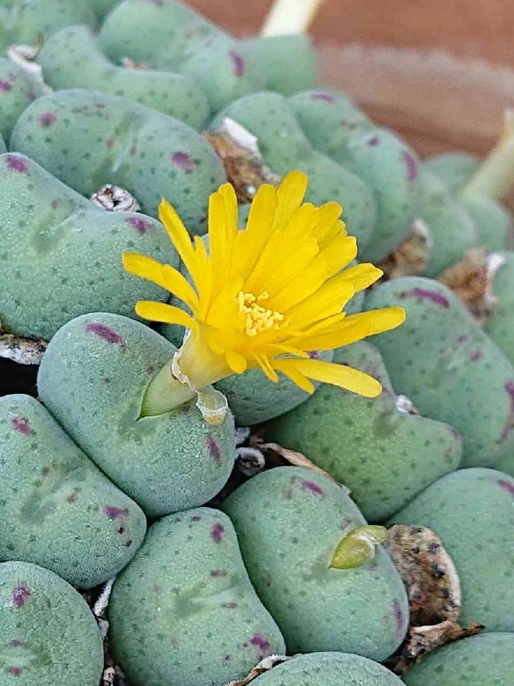 葉の中心の割れ目からマツバギクのような花を咲かせました🌻