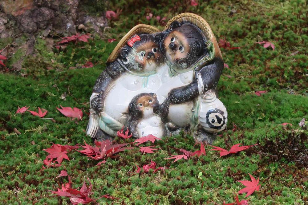 この投稿の前の写真の紅葉した木に後姿のこの置物が写っています。