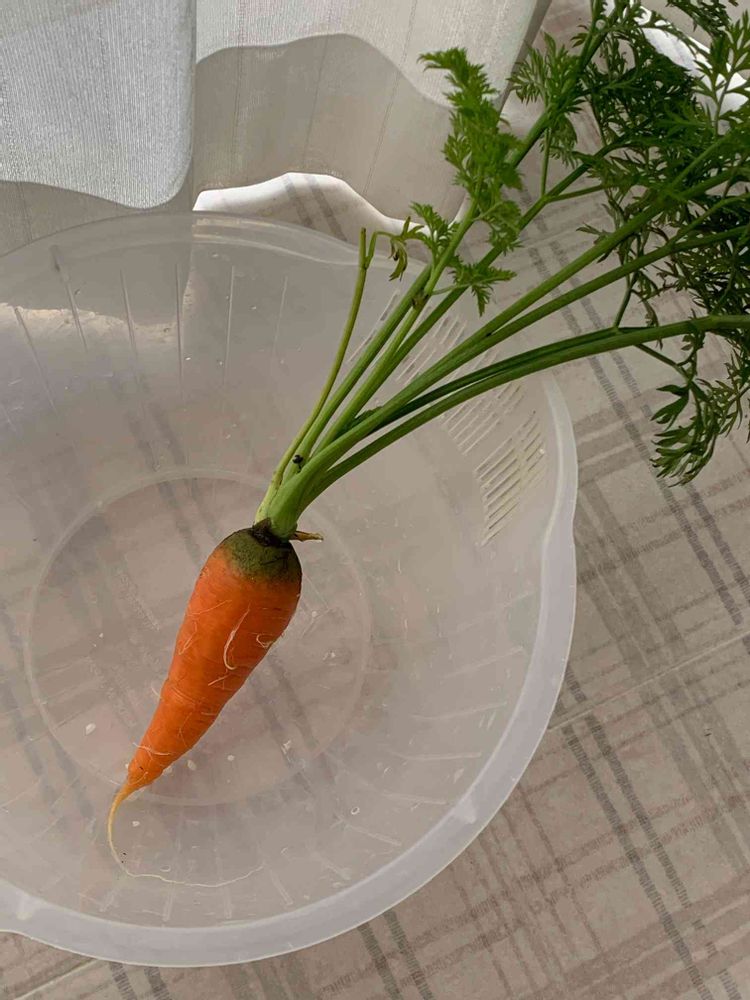 いつ収穫していいか分からなくて楽しに抜いてみました。新鮮なので野菜スティックにしようかな😁