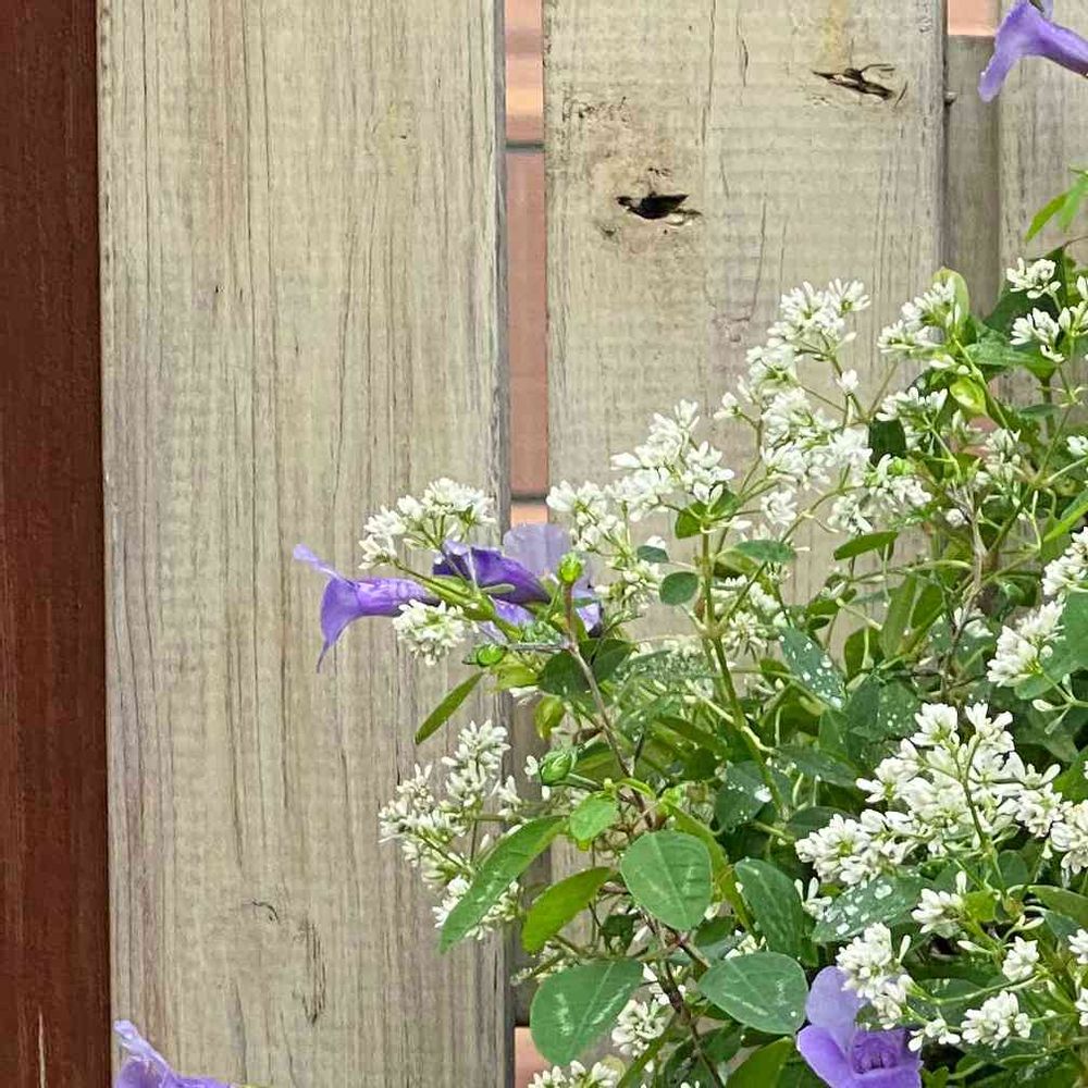 紫のお花と白いお花の組み合わせが好きです💕トレニアもダイヤモンドフロストも丈夫で夏にはどんどん大きくなり、毎日が楽しみでした💜大好きなお花で700記念タイル画を初めて作ってみました😊💜
