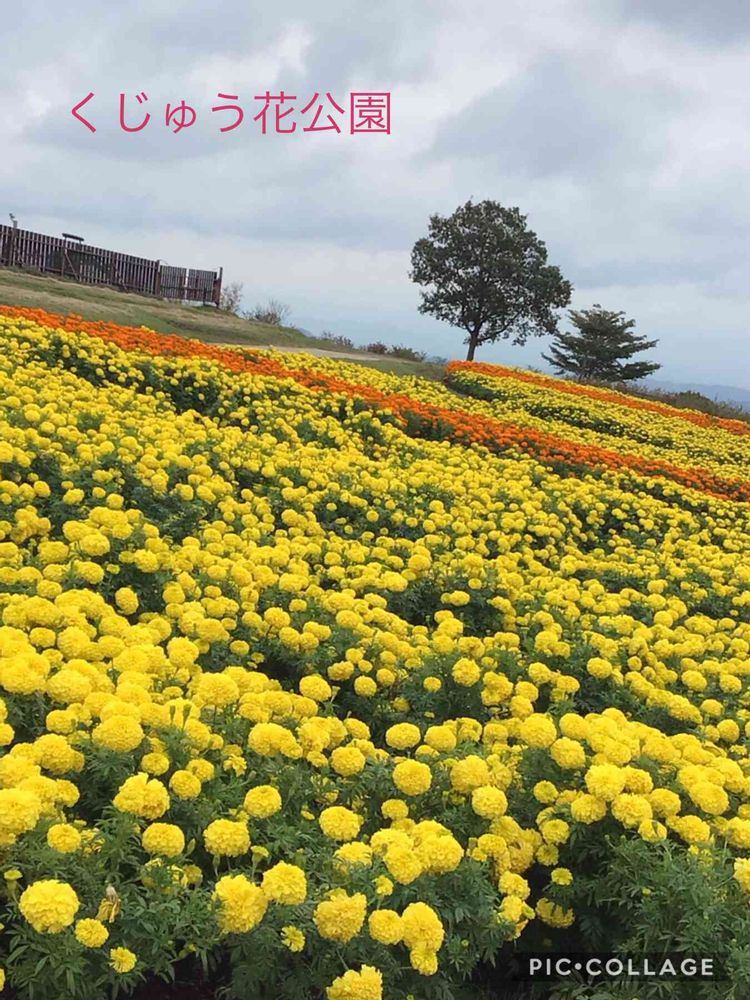 撫子さんのお出かけ先,マリーゴールド 黄色 オレンジ,くじゅう花公園の投稿画像