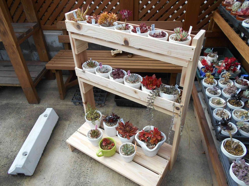 今日つくった🍀棚 3段棚で一番下にかなり大きい鉢(奥行き=350㎜)が置けるタイプ。 調子に乗って作りすぎちゃいました。(#^^#)