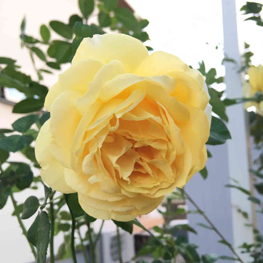地植えのミケランジェロ。お庭が寂しい時期もずーと咲いていて、優秀な子です。秋バラは花弁も多く豪華な雰囲気。香りは控えめだけれど、さわやかなイエローがお庭を明るくしてくれます✨