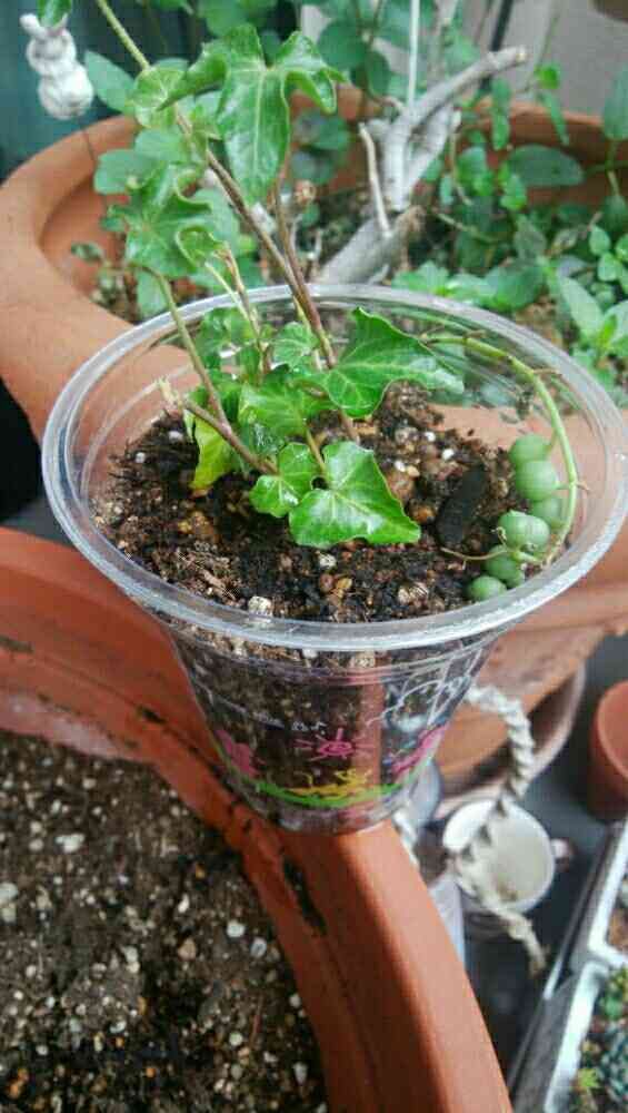 涼しさを求めてディズニーカップに植えてみました☺