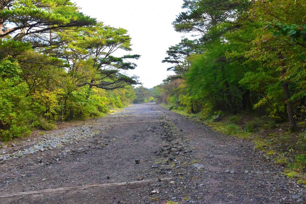 霧島温泉郷に泊まって翌朝、深い森の中の道を飛ばして、高千穂河原にやってきました。