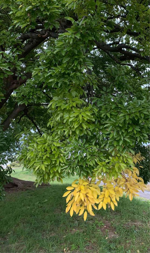 散歩中に天気がコロコロ変わる。女な心と秋の空。こんな事ですか。大樹の一部分だけがきれいなイエロー✨