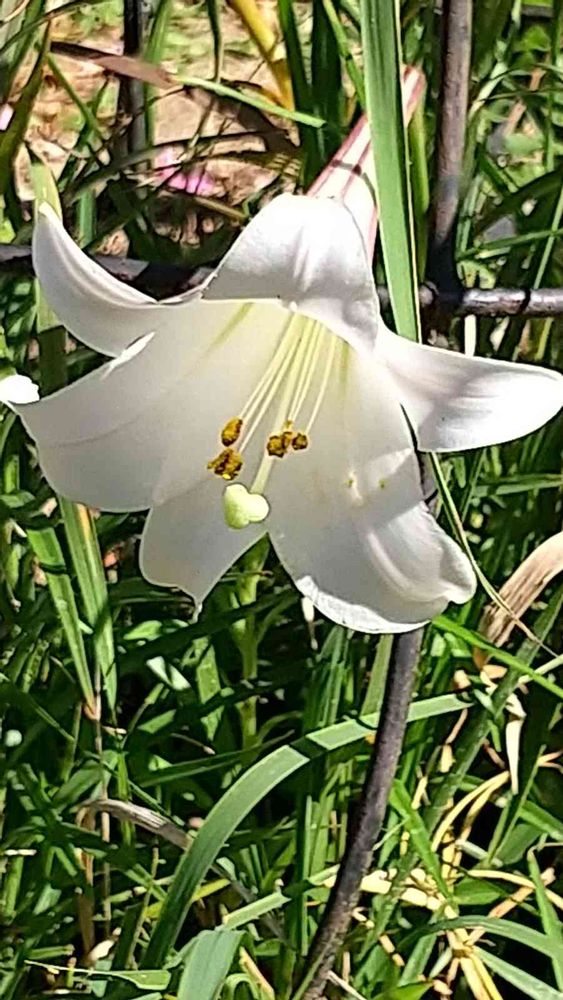 テッポウユリ(鉄砲百合)は、花の裏にスジは有りません。