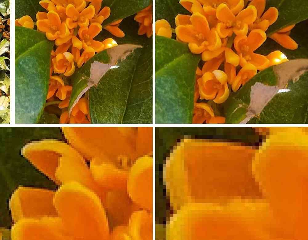 左上、スマホで見たまんまの100%表示。となりは200%の2倍で見た金木犀。