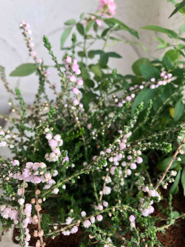 ミニバラと寄せ植えたカルーナ