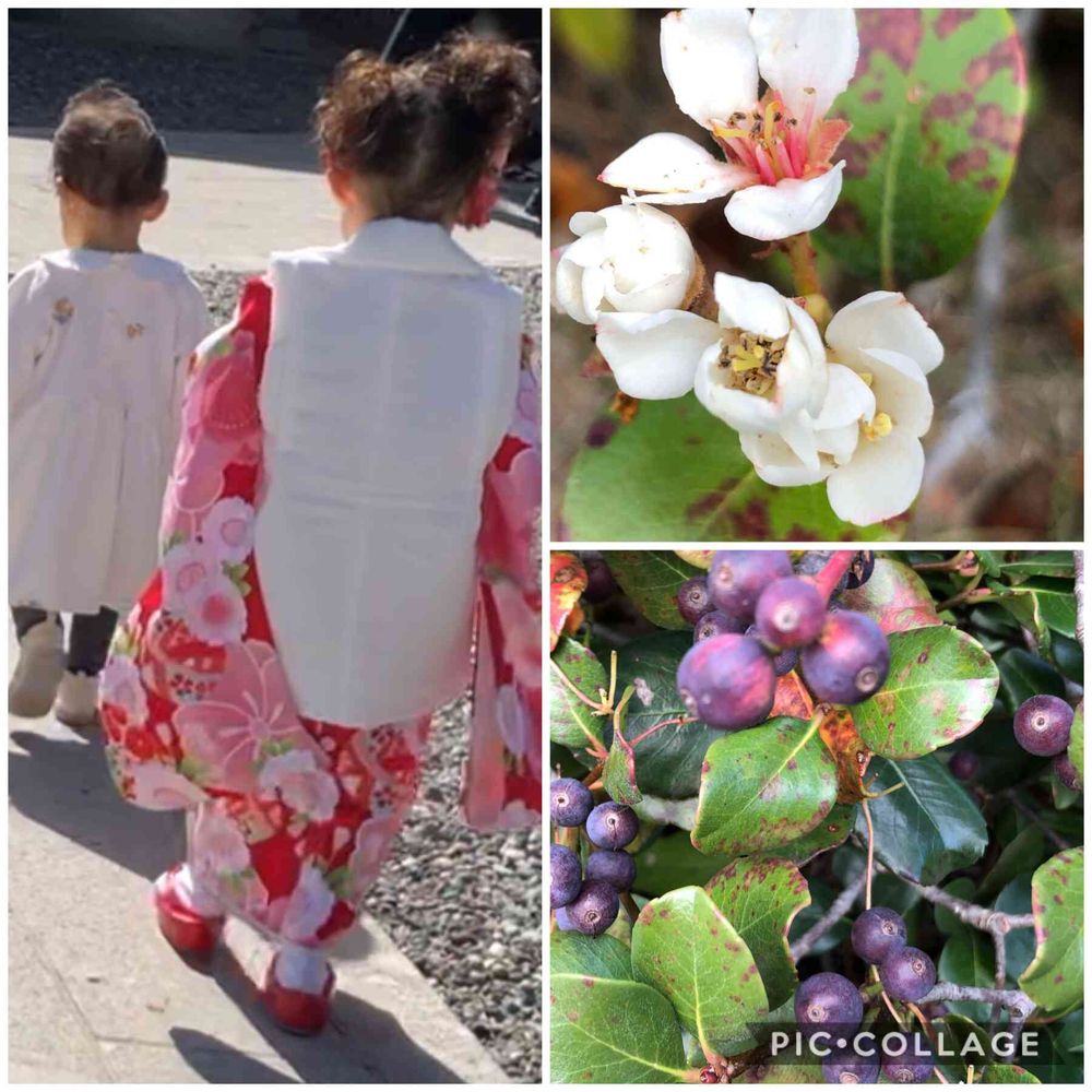 お天気の良いのが、何よりのお祝いでした☺️初めての草履で、足が痛くてはって大人は「靴履いて良いよ。」の問いに孫は「良いのこれで。」って気に入ってたのか草履での歩き方も様になっていました❣️☺️
