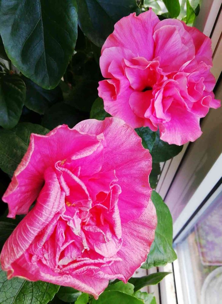 窓辺,ハイビスカス アドニス ダブルピンク,昨日咲いたハイビスカスの投稿画像