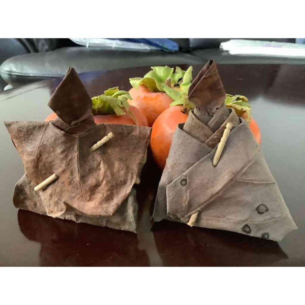 ちょっと季節外れですが、畑の先輩から、柿の葉で作ったお雛様飾りをもらいました。葉脈やシミにも趣があります🍂