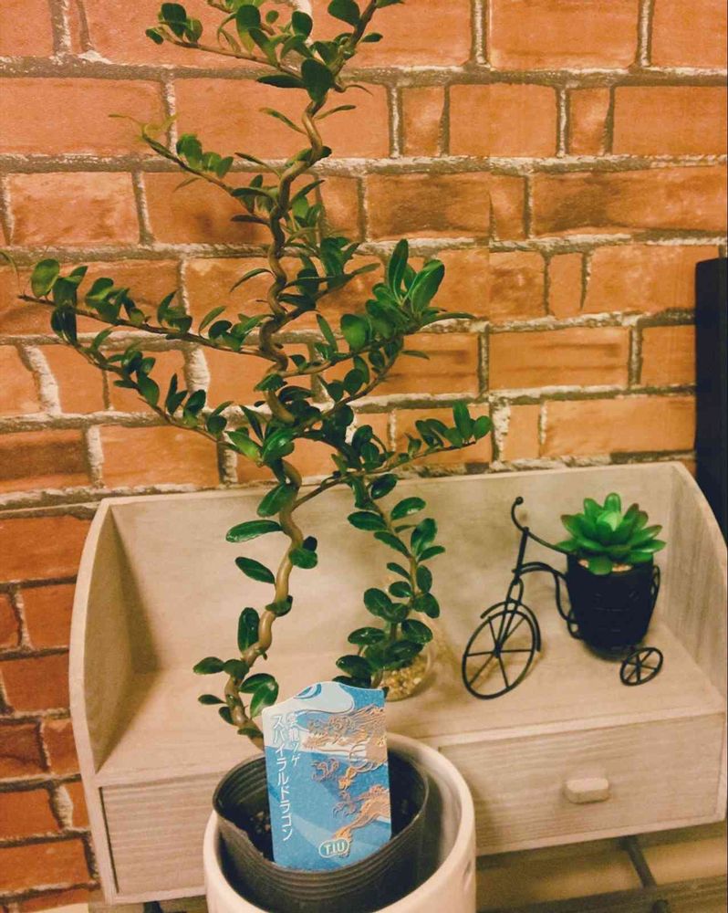 スパイラルドラゴン(雲龍ツゲ)に一目惚れして購入!幹がうねうねねじれながら育つところがおもしろい☺🌿大きくなーれ!