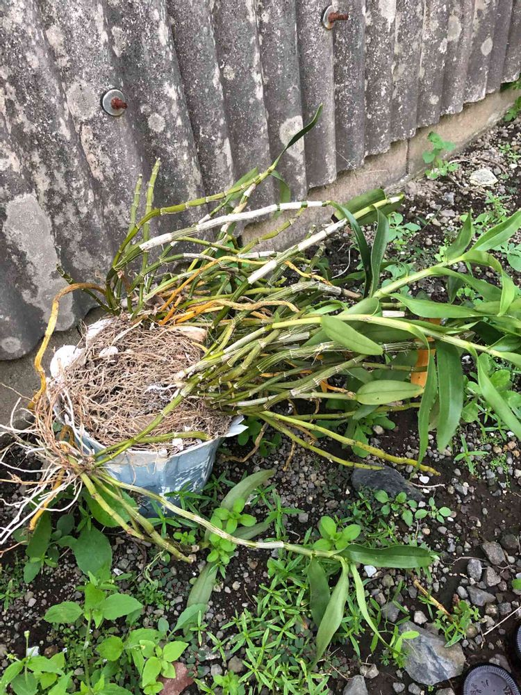 新しい住まいの庭に気の毒な蘭らしき鉢植え😭なんとかしてあげなきゃ