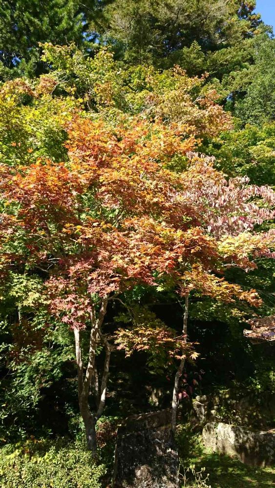 奥にある大きなヤマモミジも、色が出始めてます😃