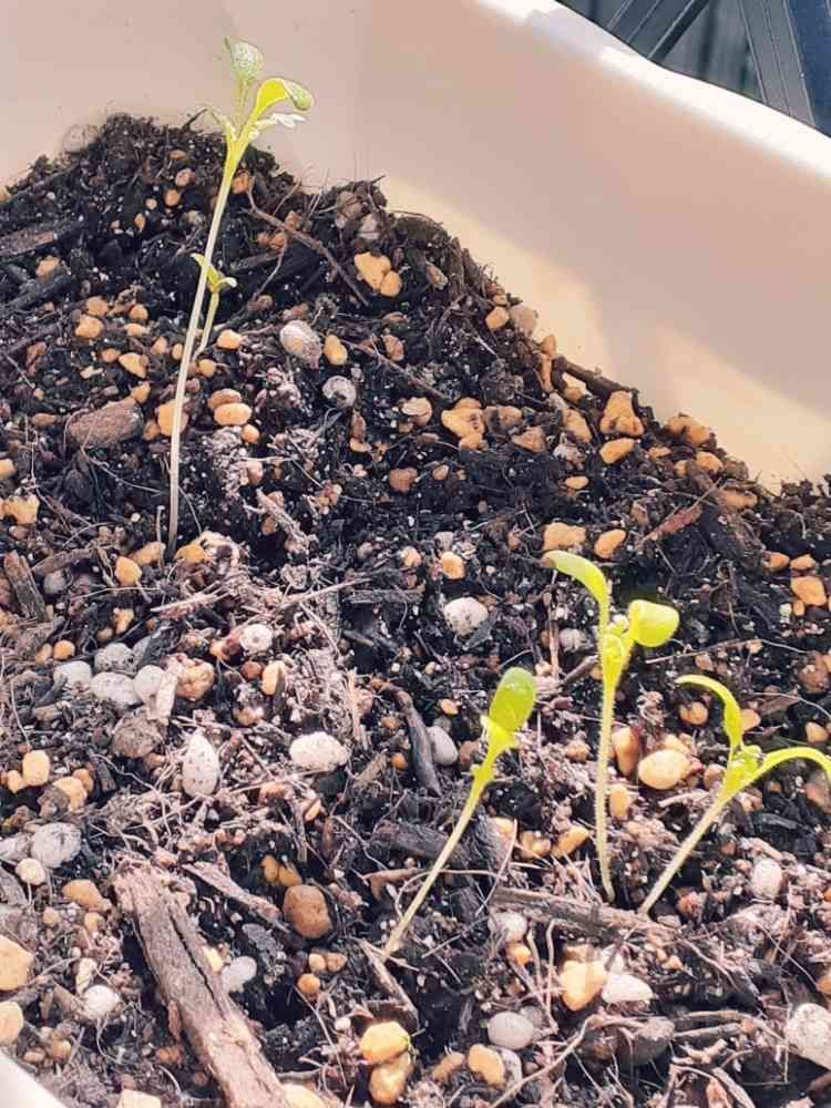 徒長してしまっているようですが、双葉の間から特徴的な3枚目、4枚目の葉が出てきました🌱