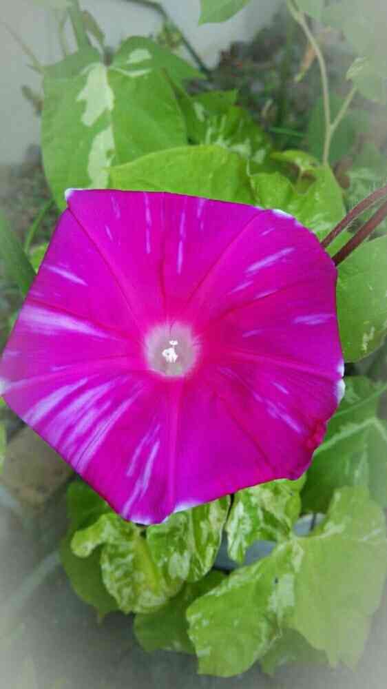 こちらは梅雨明け宣言から毎日曇天と今朝は雨☔️!斑入りのアサガオ 花も葉っぱも素敵ですね(*^_^*)