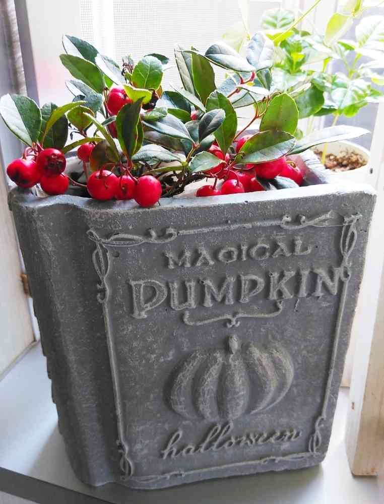 halloweenなのに赤いチェッカーベリー🤗 まだ何も植えてないんです 一応可愛いので入れてみました オレンジの花は持ってません~笑