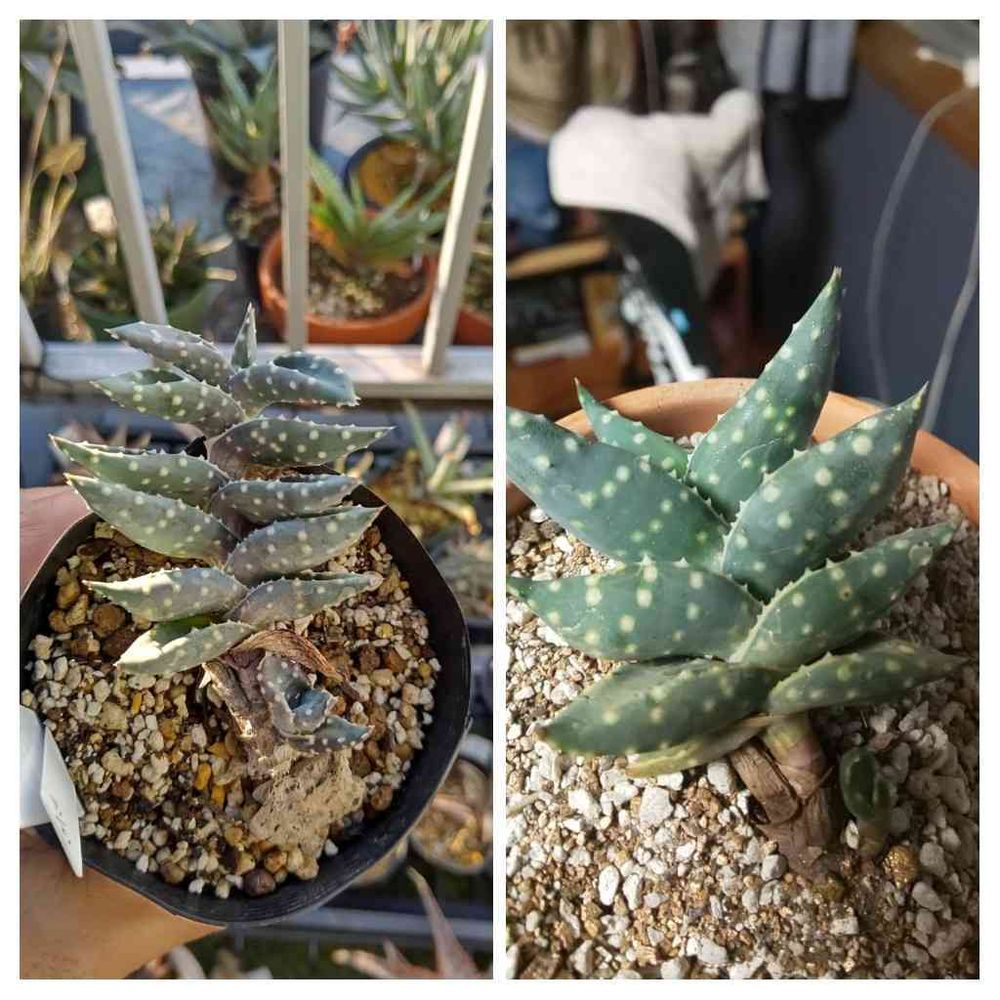 ⚫サボテン、アロエ、塊根など。 ⚫たまに「いいね」押してます。 --------------------------------------------------------- 【19.08】19年8月頃から徐々に多肉植物・サボテンの魅力に取り憑かれてしまいました。 【19.10.22】グリーンスナップを始めました。 【21年~22年】冬越しをほぼ室内避難しないチャレンジ。 【我が家の多肉植物・サボテン・観葉植物】220506時点 662/878 【セダム】3/6 ×春萌(19/11/3) ×プロリフェラ(20/2/1) ×薄化粧(20/2/5) ・※虹の玉(20/2/6) ・※虹の玉?乙女心?(20/2/6) 6・※黄麗(月の王子)(20/3/5) 【チレコドン】2/5 ×ブッコルジアヌス(19/11/3) ×スカエフェリアヌス 群卵(20/3/4) ×万物想(レティキュラーツス)(20/9/4) ・万物想(レティキュラーツス)②(20/10/2) 5・ワリチー(20/10/8) 【クラッスラ】10/17 ・天狗の舞(19/11/3) ・紅稚児(19/11/3) ×姫花月(19/11/3) ・テトラゴナ(19/11/12) ・火祭り光(19/12/4) ×花月錦白斑(19/12/4) ×※花月(金のなる木)(19/12/12) ・神刀錦(20/1/8) ×キムナッキー(20/1/10) ×10・※メセンブリアンセモイデス(ラージフォーム)(20/1/23) ×※花月?黄金花月?⇒火祭り錦?(20/1/23) ・巴(20/2/27) ・※火祭り(20/3/5) ・ゴーラム(20/12/16) ・神刀(20/12/24) ×アイボリーパゴタ(20/12/24) 17・spトランスバール ドラケンスバーグ(20/12/24) 【カランコエ】1/19 ・錦蝶(19/10/19) ×不死鳥錦(19/10/24) ×カーニバル(19/12/4) ×※月兎耳?(19/12/26) ×唐印(19/12/28) ×テディベア(20/1/10) ×ファング(20/1/11) ×ミロッティー(20/1/23) ×※黒兎耳?月兎耳?(20/2/6) ×10・※胡蝶の舞(20/2/6) ×星兎耳(20/2/12) ×ゴールデンバニー(20/2/12) ×福兎耳(20/2/12) ×姫黒兎耳(20/2/19) ×※シナモン?孫悟空?(20/2/19) ×キューエンス(20/2/19) ×※月兎耳(20/2/20) ×黒兎(20/2/20) 19×シナモン(20/2/21) 【センペルビウム】13/17 ×巻絹(19/9/6) ・パシフィックナイト(19/9/14) ・※百恵(19/12/12) ×※高嶺の華(19/12/12) ・※綾桜(19/12/12) ・※ファイヤーバード?パルグラム?(19/12/12) ・※レッドチーフ?ウラヌス?(19/12/12) ・※シャンハイローズ?(20/2/4) ・※神風?(20/2/4) ×10・※綾桜?(20/2/4) ・※麗人盃?(20/2/4) ・※雪牡丹?(20/2/4) ×※紅牡丹?(20/2/4) ・※ラウンドシーン?(20/2/4) ・※巻絹?(20/2/6) ・レッドベル(20/2/19) 17・※ご近所さん(20/5/17) 【ガステリア】39/43 ・春鶯囀バテシアーナ(19/11/20) ・グロメラータ(19/11/20) ・臥牛(19/11/20) ・リリプターナ(子亀姫)(19/11/20) ・白星竜(ベルコサ)(19/11/20) ・錦沙戸宝(19/11/20) ・ニティダ(19/11/22) ・フロッキー(19/11/22) ・姫子宝錦(19/11/24) 10・虎鉾(19/11/24) ・富士子宝錦(19/11/26) ・照姫(19/11/27) ・恐竜×大桑臥牛(19/11/29) ・颯々の松(19/11/29) ・ドラゴンスキン(19/12/2) ・名前不明⇒グリーンワイパー(19/12/4) ・黒鶯囀(19/12/4) ×臥牛錦 糊斑(19/12/4) ・白臥峰ダルマタイプ(19/12/4) 20・バイリシアナ×グロメラータ(19/12/10) ・ピランシー錦※斑多め(19/12/24) ・ピランシー錦※斑少なめ(19/12/24) ・臥牛竜(19/12/24) ・グラキリス(虎の巻)(19/12/25) ・ホワイトパール(20/1/7) ・白銀水牛(20/1/7) ・エクセルサ(20/1/8) ・ダルメシアン(20/1/10) ・タワー(20/1/23) 30・クロチェリー(20/1/23) ×ニグリカンス f.dark monstrosa(20/2/27) ・金剛殿(20/2/27) ×ラウリンソニー(20/3/13) ・幅広ピランシー(20/4/7) ・恐竜×白点臥牛(20/4/7) ・恐竜(20/11/9) ・ラウリンソニー②(20/11/19) ・恐竜②(21/1/12) ・恐竜×春鶯轉(21/1/13) 40・ホワイトパール②(21/1/13) ×ラウリンソニー③(21/2/10) ・エレフィアエ(21/4/13) 43・臥牛②(21/6/14) 【ディッキア】49/52 ・ハイブリッド(19/11/6) ・(アリソナ×マルニエルラポストレイ)×ボーン(20/2/21) ・アリゾナ(20/3/13) ・ニッケルシルバー(20/3/13) ・縞剣山錦(20/3/18) ・(ケリー×マセドイ)×ヘブディング ビッグブルーF1(20/3/24) ・ターザン(20/7/15) ・ゴエリンギー(20/7/15) ・エステベシー(20/7/16) ・グランマルニエル スノウ(20/8/21) ・ダウソニー(20/9/9) ・コリスタミネア パープルフォーム(20/9/16) ・マイケルアンドレス(ブリットルスターF3)(20/9/16) ・ゴエリンギー レッドクローン×ターザン(20/9/18) ・ターザナ(20/9/18) ・レッドボーン×スカイウォーカー(20/10/27) ・グランマルニエル(20/11/4) ・トゥーシ―F2(シルバークローン)(20/11/4) ・グレイオプス(20/11/5) 20・タイニーレッド×ヘブンアンドヘル(20/11/5) ・マルニエルラポストレイ エステベシー シーディング ブラジル(20/11/5) ・(レッドシャーク×ディストーション)×ジョーズ(20/11/5) ・ブラックアイス(20/11/6) ×ダウソニー×ガーネットクロウ(20/11/12) ・デリカータ(20/11/18) ・エステベシー×ゴエリンギ―(20/11/30) ・ゴエリンギーOPS セレクト ホワイト(20/11/30) ・(ソウフィッシュ×7a)×ターザン(20/11/30) ・ベアテアエ レッドクローン(20/12/07) 30・アリゾナ×HU-5(20/12/08) ・エステベシー②(20/12/08) ・ダコタ(20/12/09) ・マルニエルラポストレイ(20/12/10) ・エステベシー×ブリットルスターF2(21/1/8) ・マウンテンオブニードルズ(21/1/14) ・エステベシー③(21/1/27) ・パラファット(21/2/10) ・ジョーズ×ドナマリエ(21/3/15) ×フォステリア×エステベシー(21/3/15) ×40・フォステリア×エステベシー②(21/3/15) ・カタナ(21/3/24) ・スノーストーム×ブライヤーパッチ(21/3/24) ・ワサビ(21/4/7) ・ブラックアイス②(21/4/12) ・ブラ
